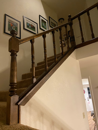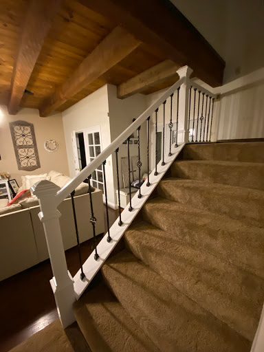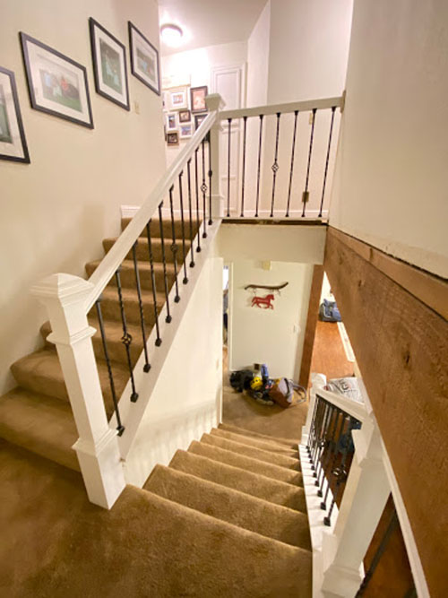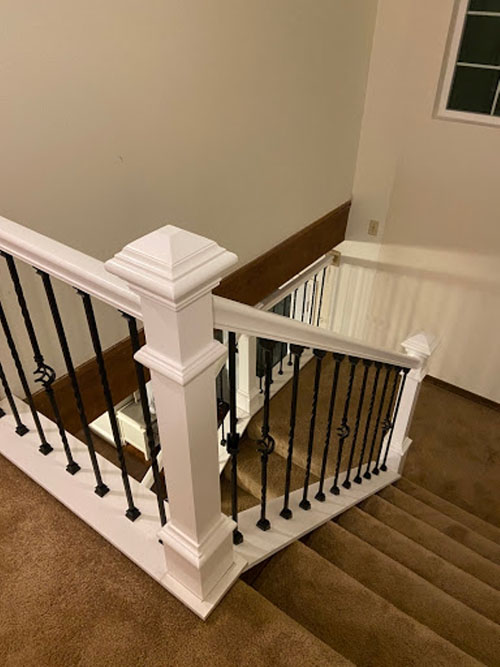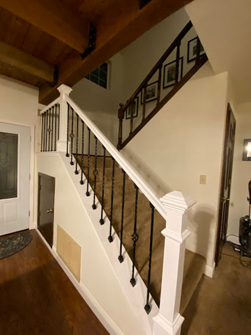We matched the stairs the new front door, whcih also had white paint with wrought iron decor.