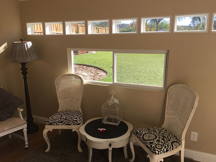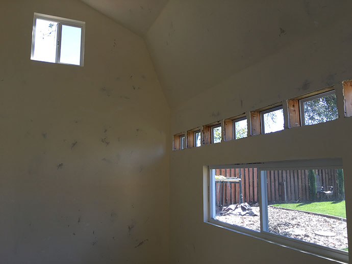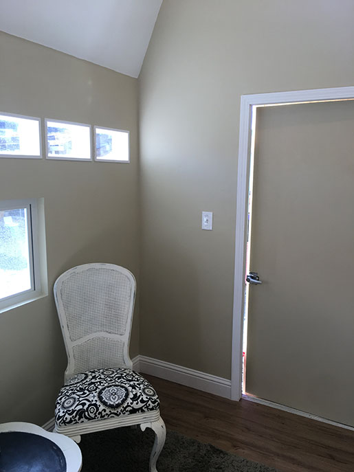 We Insulated the walls, added a window, resized door, drywalled & textured the walls, and installed flooring.